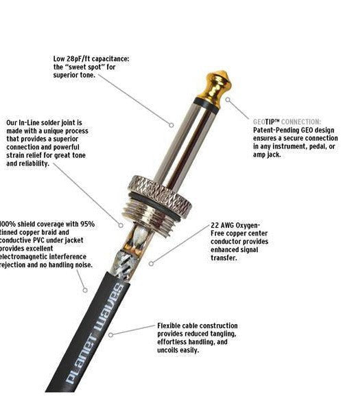 Planet Waves American Stage Guitar Cables save your tone from being mangled before it hits your amplifier. American Stage Cables use audiophile-quality wire and custom-designed Neutrik 1/4" plugs that make a robust connection and deliver your precious tone with pristine clarity. Because sound quality and reliability should be at the forefront of every player's needs onstage or in the studio, you don't want to compromise by using inferior cables. Open your ears to the difference a great cable makes, and trust your signal to Planet Waves American Stage Cables.