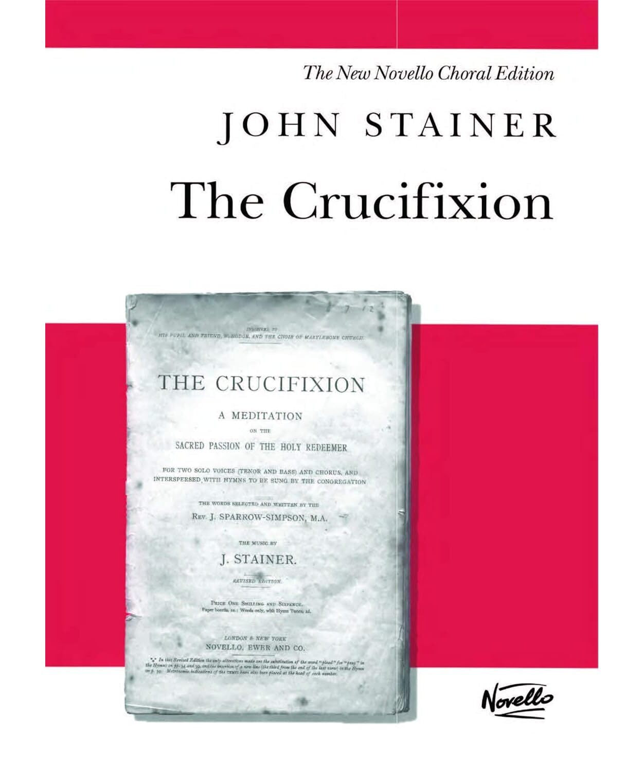A Meditation on the Sacred Passion of the Holy Redeemer, for Tenor and Bass solo, SATB Choir with Organ accompaniment, with hymns for congregational participation. The text was selected and written by Reverend J. Sparrow-Simpson, and revised by Michael Pilkington. The Crucifixion was first performed in 1887. This Novello edition of the vocal score is clear and well presented, with thoroughly accurate and detailed editorial markings and suggestions, as edited by Michael Pilkington.